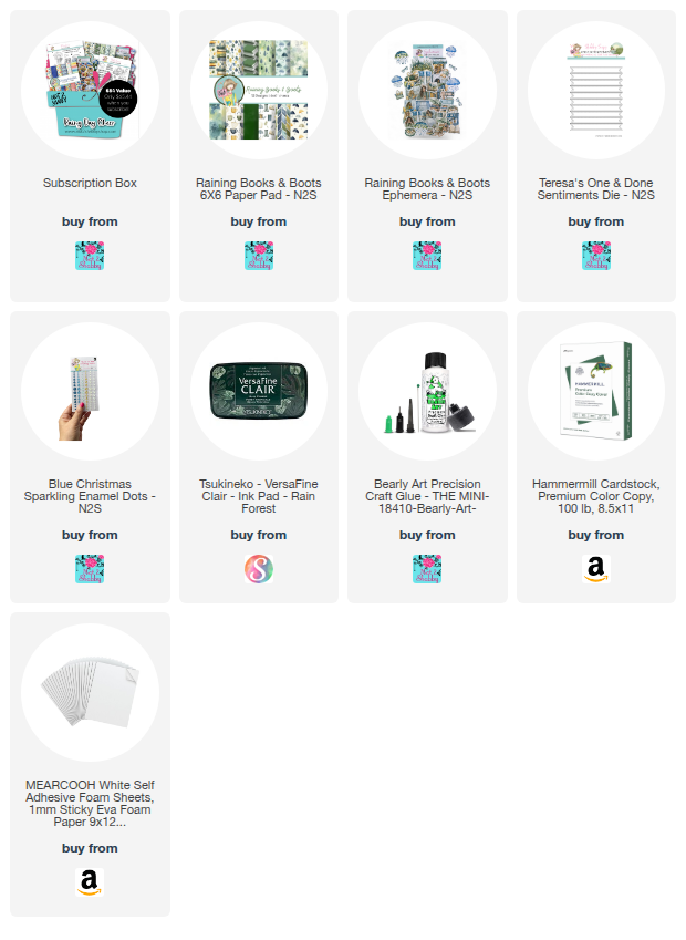 Anyhow, one of the papers in the January Box of the Month is Raining Books and Boots and it has some beautiful patterns in soft earthy blues and greens. I've got a video over on the Not 2 Shabby channel today sharing my process making this sweet little card. If you have a moment, come say hi!